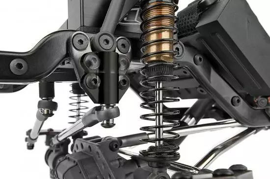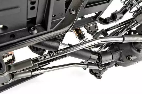 We’ve updated the Builder’s Kit 2 by including our GKS™ shock towers infront and rear. Our shock mount inserts provide the ability to adjust shock angle, droop, and vehicle ride height without affecting spring preload. Matched up with the shock mount inserts are our race-proven, ultra-smooth Factory Team™ bronze shocks with black caps and collars–perfect for traversing rough terrain. Along with the updated shock towers, we’ve included the GKS™ aluminum track bar mount that is bolted directly to the frame rails. This makesthe front suspension more rigid and flex-free with a more precise steering feel. Also included are updated Factory Team 12.3” wheelbase high-clearance links with black finish and low-friction Delrin® pivot balls, which are more resistant to abrasion and friction wear.