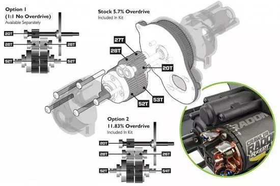 You get all these new features along with our revolutionary Stealth® X transmission with the ability to adjust the front and rear drive ratios independently across three differentlevels. In the box you get both the 5.7% and 11.83% overdrive gears, and available separately is a one-to-one ratio option for those who wish to drive the front and rear equally.